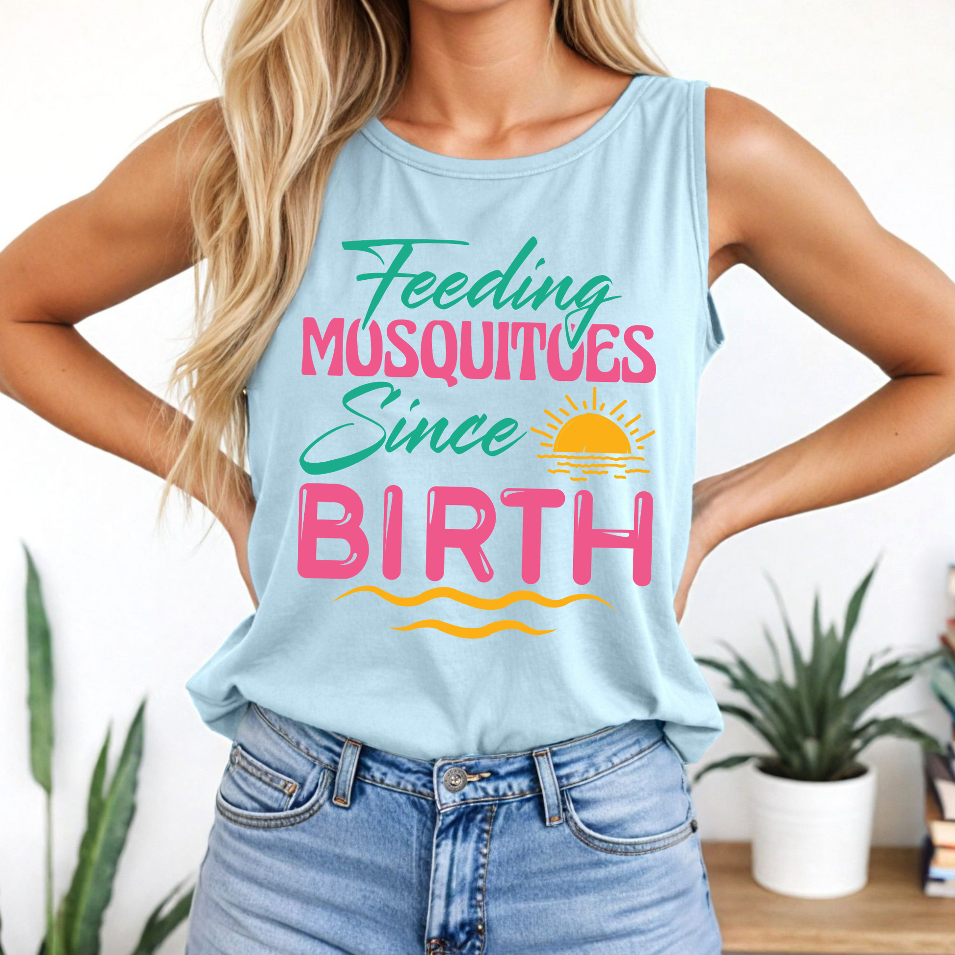 Pictured on Violet and Chambray Comfort Colors Tees.